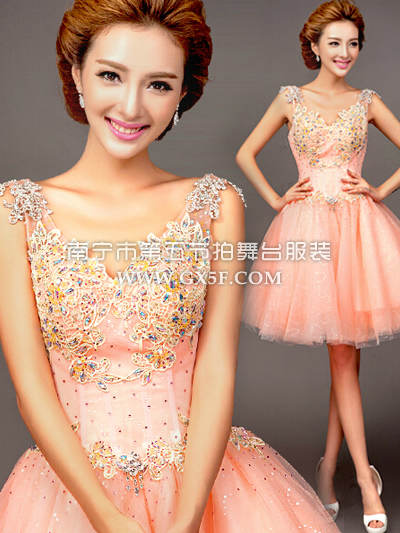 05G333A粉色双肩银饰镶彩钻星点亮片蓬蓬纱