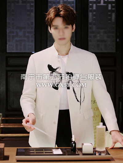 10B995白色明星同款中山装新中式国风水墨