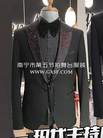 10B1000黑色绒面红底亮钻领边主持人歌手男