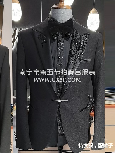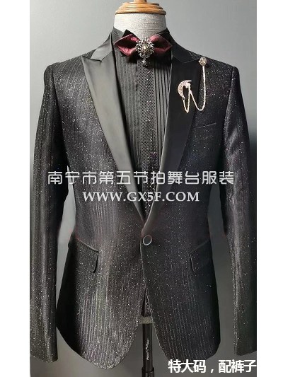10B1023特大码男礼服黑色肩袖烫钻套装主持