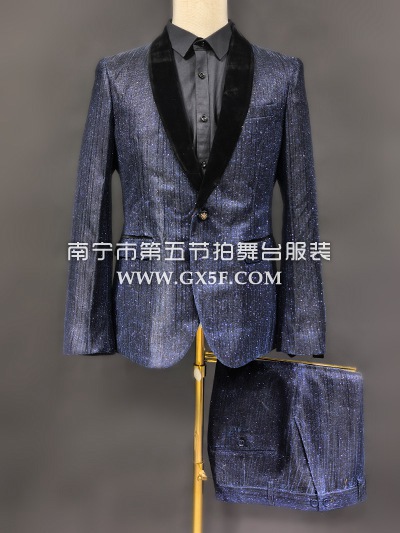 10B1026深蓝黑藏蓝细闪直条套转主持人歌手