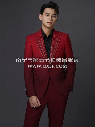 10B1027红色渐变烫钻领主持人歌手男礼服套