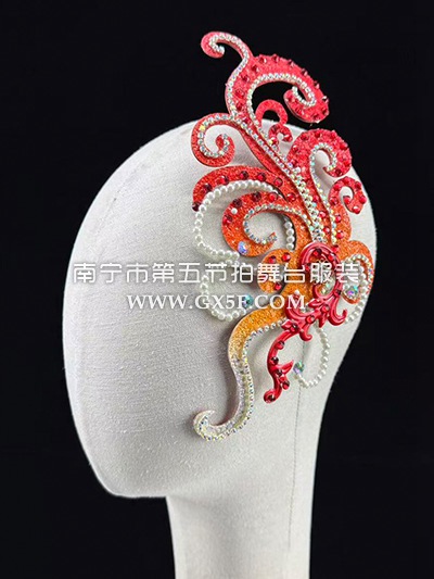 14G4382红色贴钻串珠大摆裙开场舞头饰伴舞