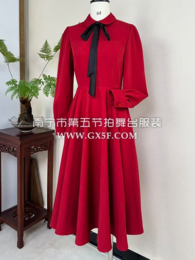 02G1659红色长袖中长连衣裙歌伴舞朗诵合唱