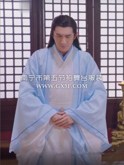 08B671浅蓝色蓝边秀才才子汉服古装小品第