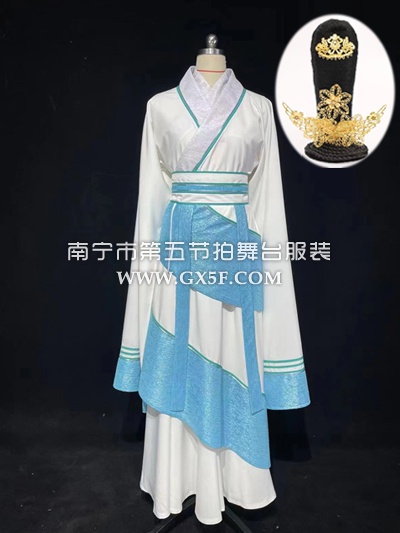 08G1236白中袖衣蓝中长裙五四青年民国学生