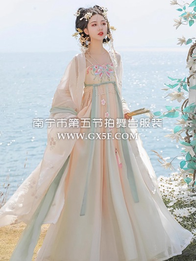 08G1667浅杏色刺绣大袖衫诃子裙唐制清新汉