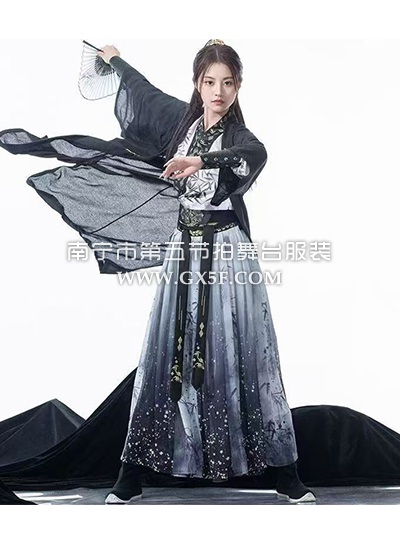 08G1668黑白竹叶衣裙女侠客武侠风汉服