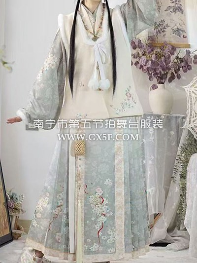 08G1669浅绿加绒比甲马甲琵琶袖马面裙汉服