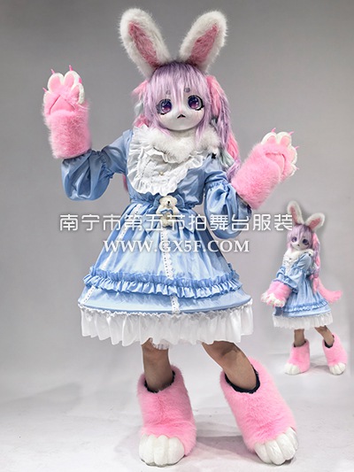 • 11G412粉紫兔耳朵kig兽头头套兽装洛丽塔二