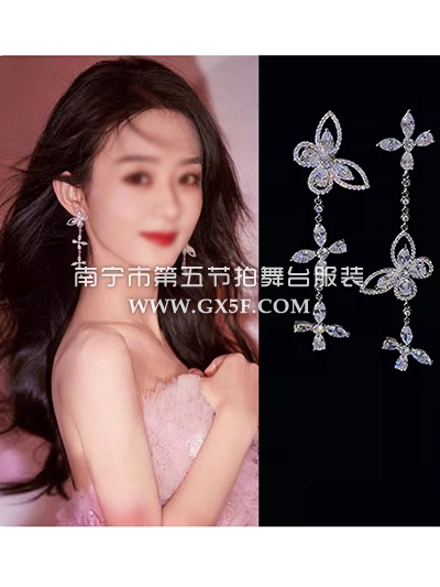 14G1331气质晶锆蝴蝶不对称耳环耳夹