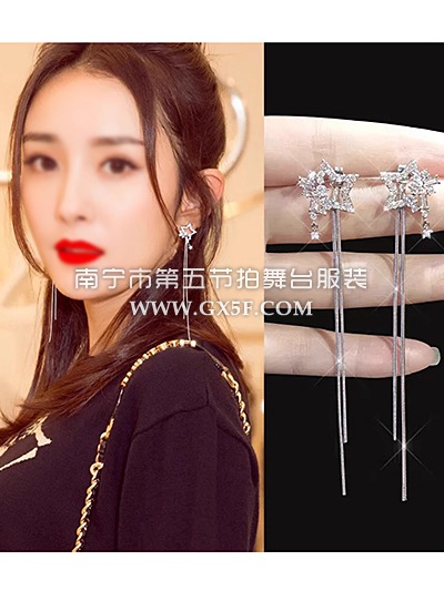 14G1333长款星星流苏镶锆石耳夹耳环