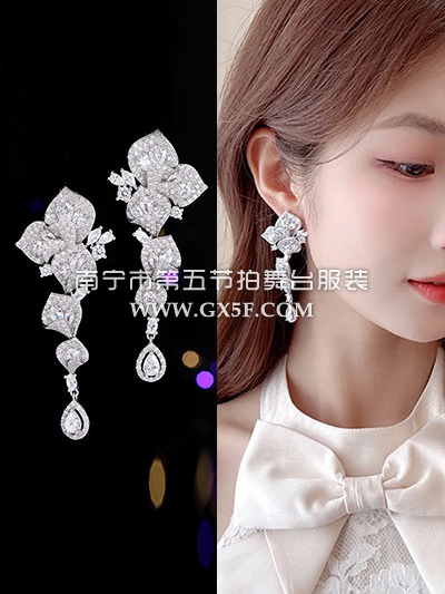 14G1335重工锆石花朵耳夹耳环