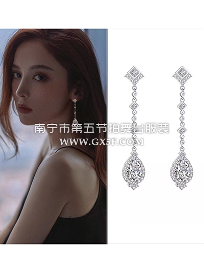 14G1332锆石耳环超闪长款流苏耳夹耳环