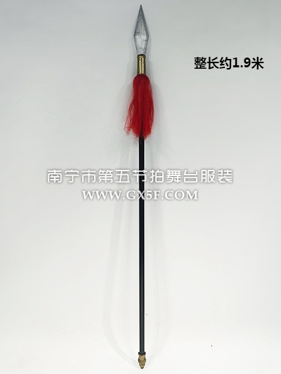 14B6256黑色不锈钢杠木质银头红缨枪长矛古