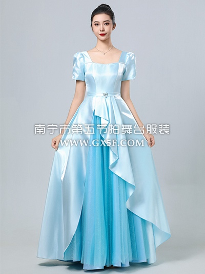 04G115天蓝色短袖连衣裙合唱朗诵礼服拍