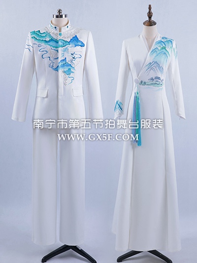 • 02B1670浅蓝白渐变衣裤松花江上合唱朗诵歌